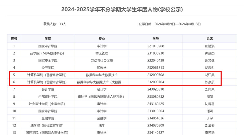 计算机学院关于2026年薪火奖学金拟获奖人员的公示