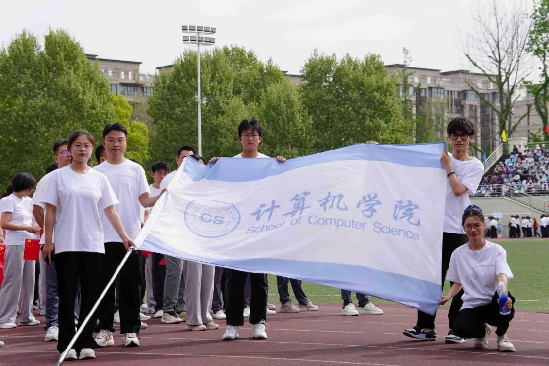 运动会开幕式上,计算机学院方阵迈着铿锵有力的步伐,精神抖擞地走过主席台。他们口号嘹亮,通过创意十足的表演,充分展现出青春的蓬勃风采,彰显出新时代大学生的昂扬斗志与独特魅力。